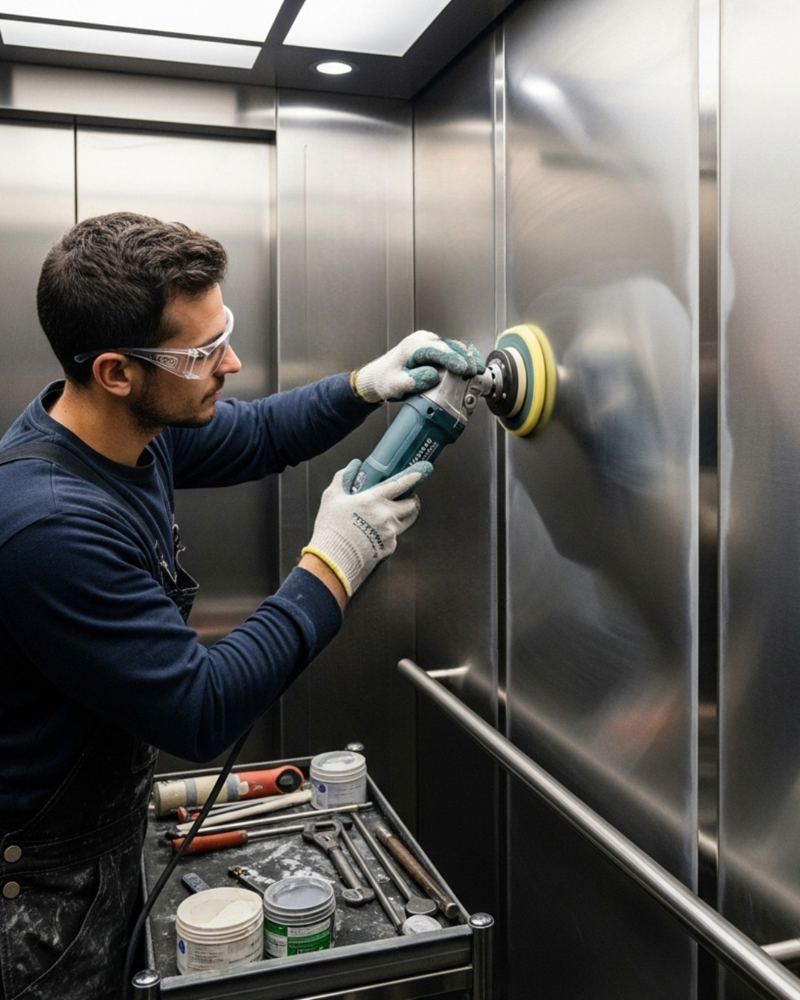 Elimine riscos, manchas e marcas de obra no aço inoxdável. Especialistas em devolver elegância e sofisticação aos elevadores e portas de prédios novos.